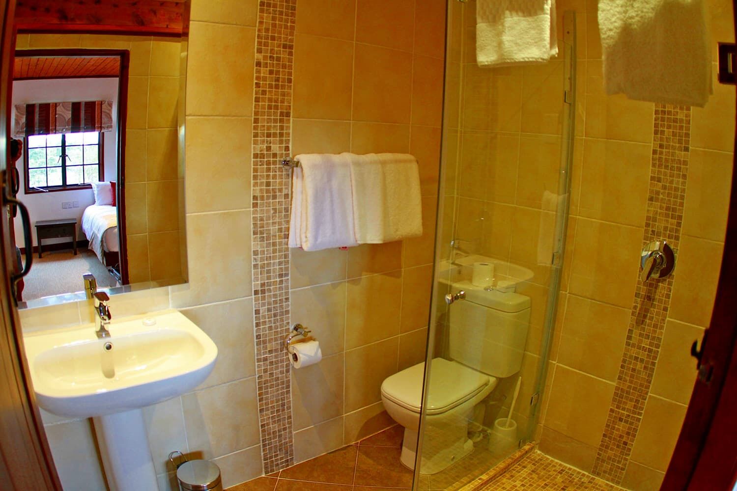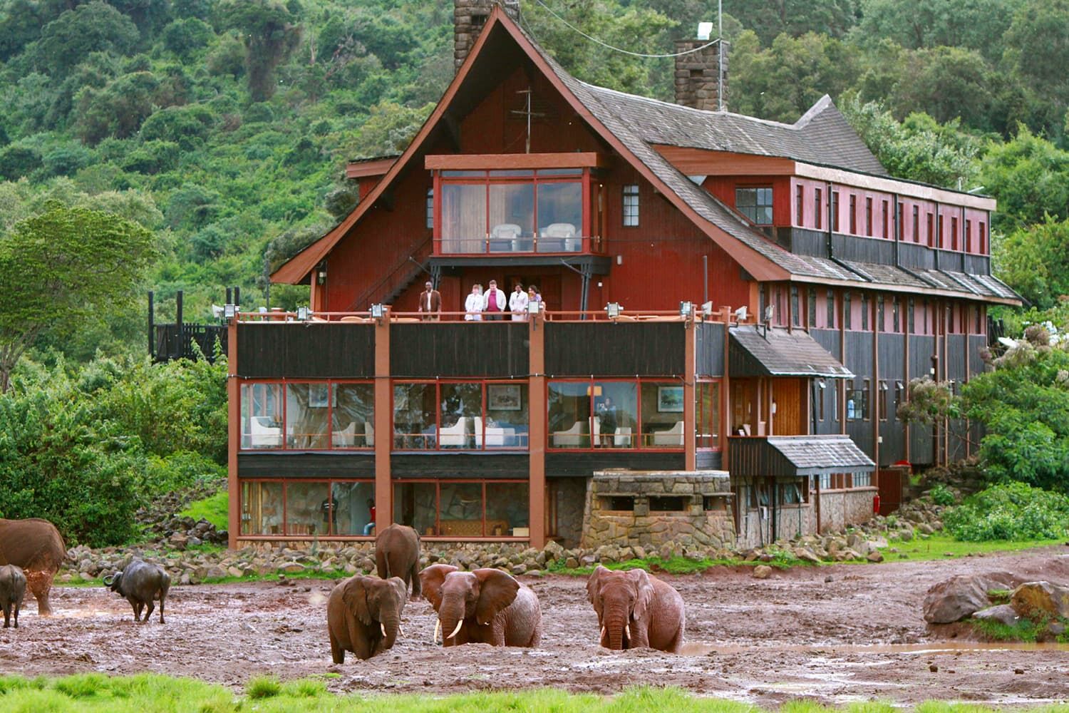 基本的にはツリー・トップスと同じスタイルだが、さらに山の中(奥)にある。 箱舟をイメージしてキャビンと呼んでいる。天気が良いとケニア山が見られる。