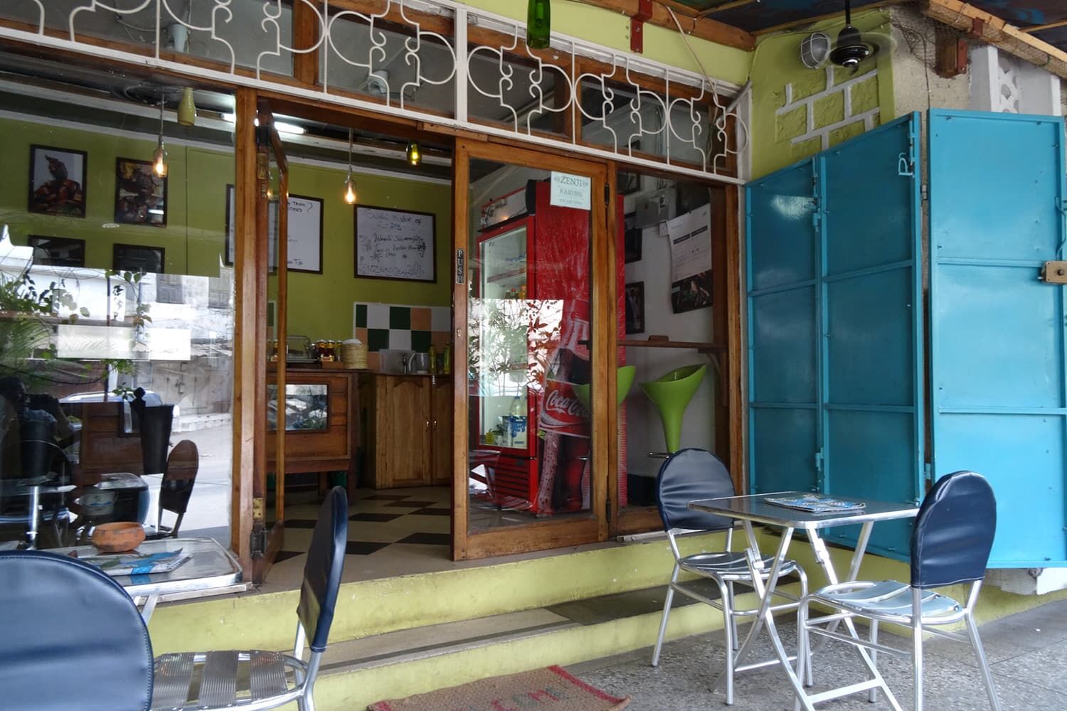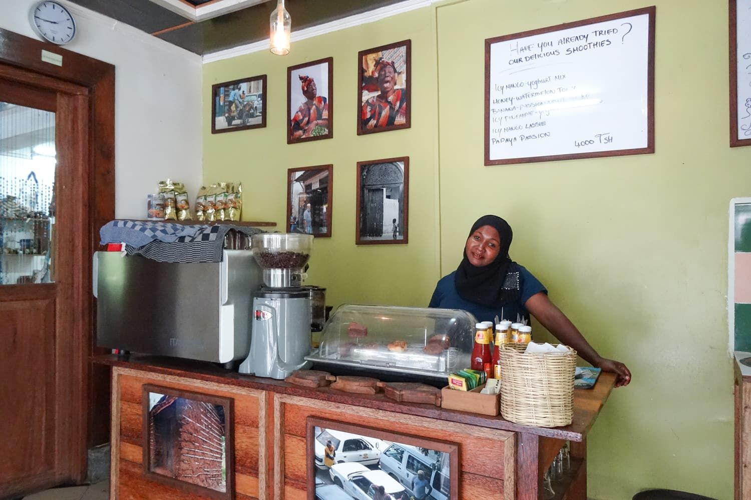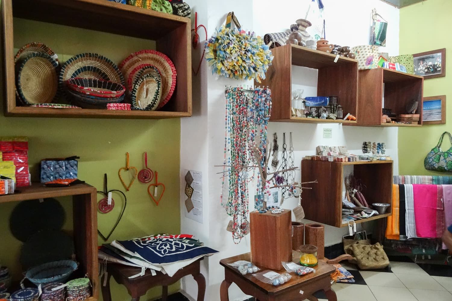 オーガニック石鹸や女性支援を行っているNGOの商品が販売されているセンスの良い土産物屋とカフェを併設。部屋はカンガを所々用いており、かわいく、そしてシンプルな作り。