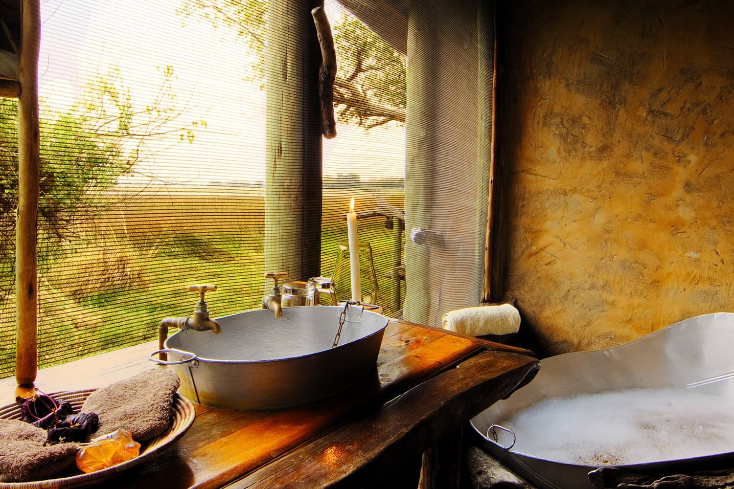 屋外シャワー&バスタブ、ベランダ、蚊帳