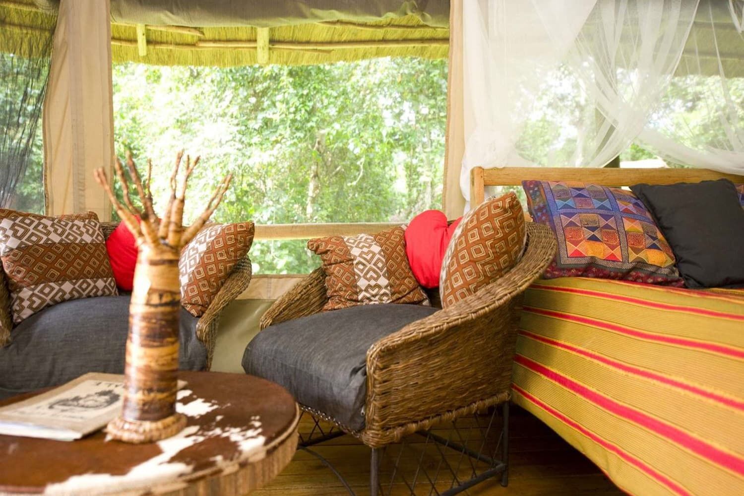 キバレ森林国立公園内にあるロッジで、チンパンジー・トレッキングのスタート地点からは徒歩1分以内のベストロケーションです。サルや鳥がやって来るロッジのオープン・ラウンジでのんびりするのが心地よい。SKY TREE HOUSEと呼ばれる部屋もあり、アドベンチャー好きの方にはここの宿泊もお勧め。