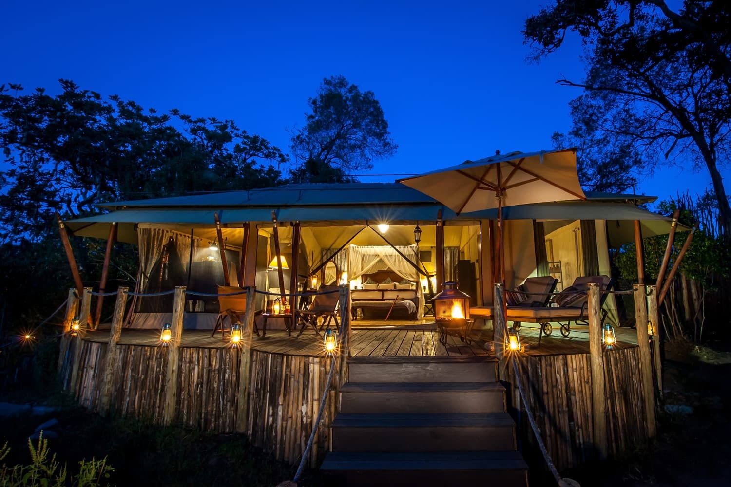 ラグジュアリーテント、各テントにバスタブ有、オープンデッキ有