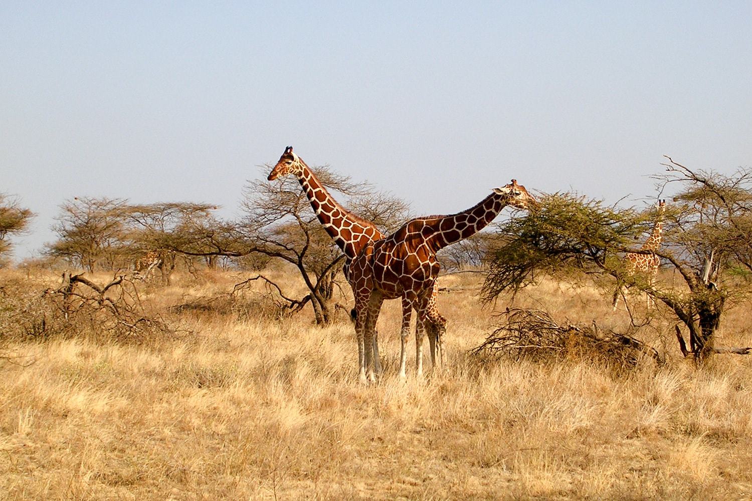 赤道を挟んで北半球に位置しています。ここでしか見られない希少価値のある動物が沢山棲息しているため、近年人気が出てきています。数ではなく、あくまでもその絶滅に瀕するとか数が減っている動物達です。例えば、普通のシマウマ(グラント・ゼブラ)よりも縞が細くて細かい、きれいなグレービー・ゼブラ、普通のキリンよりハッキリした網目模様のアミメ・キリン、後ろ足で立ち上がって木の葉を食べるゲレヌクなどが代表的です。またヒョウを見るチャンスが大きい公園です。ホロホロ鳥もダチョウすらも南半球とは異なります。