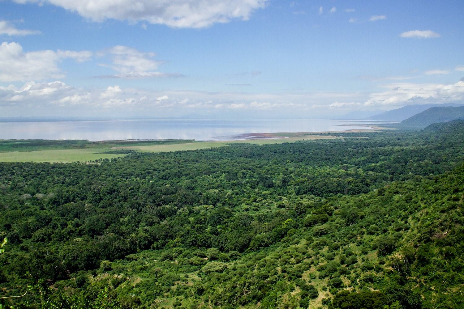 タンザニア北部のアルーシャ州にあり、グレート・リフトバレーの谷底に連なる湖のうちの一つマニャラ湖を含めた、面積約330㎢の国立公園。公園はリフトバレーの断崖の下に広がり、巨大なイチジクとマホガニーからなる森林が特徴的で、森の沼地にはバブーンやブルーモンキーなどの霊長類、ゾウ、森林棲の鳥類が棲息、公園南側にはアカシアの森があり、ヒョウや「木登りの習性」が見られることでも知られたライオンなどの大型ネコ科動物も生息しています。湖とその周囲の草地は、バブーン、カバ、インパラ、ゾウ、ヌー、バッファロー、イボイノシシ、キリン、サイなどの草食獣の生息地となっています。生息する野生動物の面では若干地味な印象が否めませんが、フラミンゴ、エボシクマタカ、ハイガシラショウビンをはじめ、300種を超える野鳥を観察することができ、バードウォッチングの面ではタンザニアで必須の訪問地の一つです。