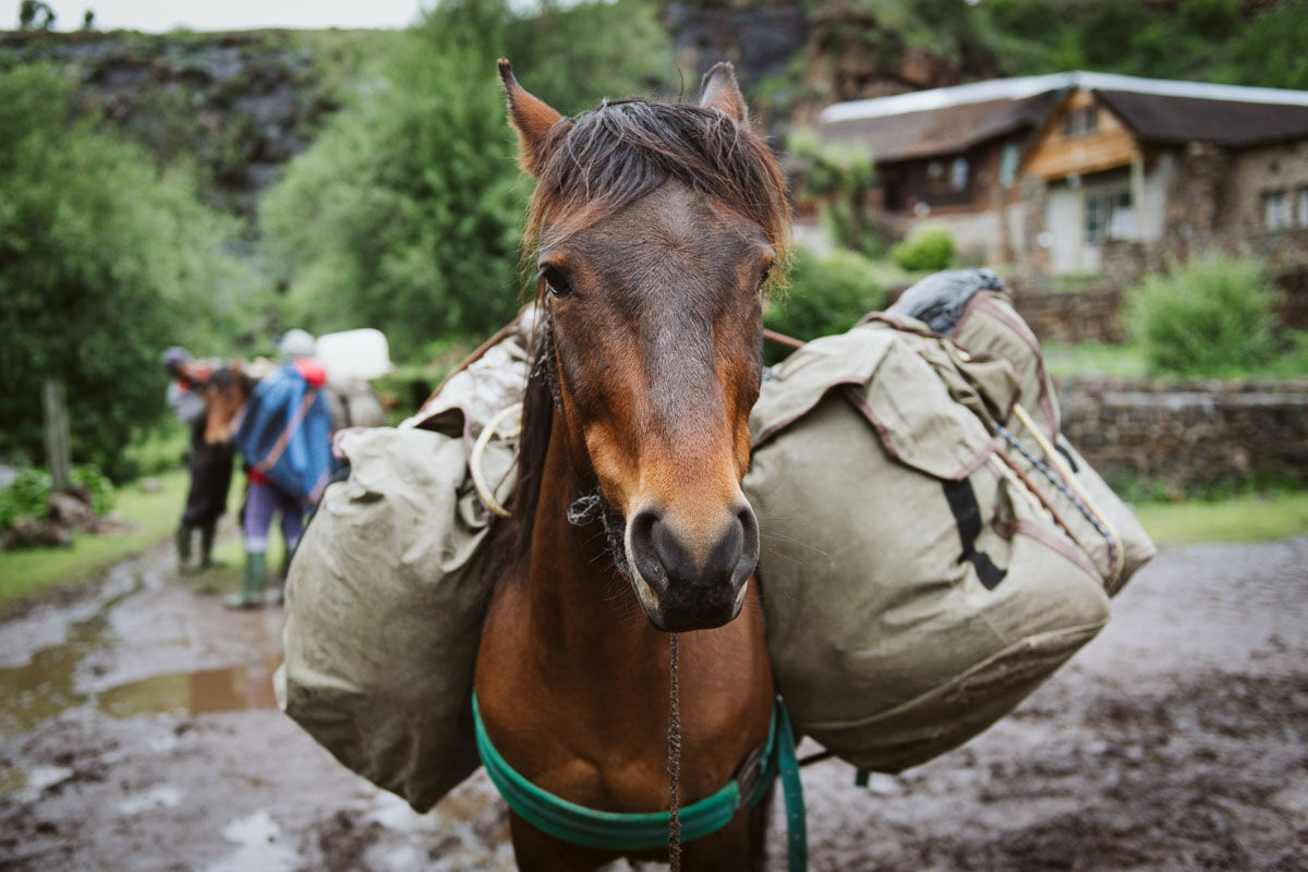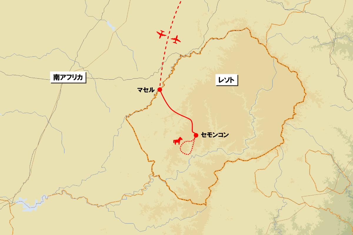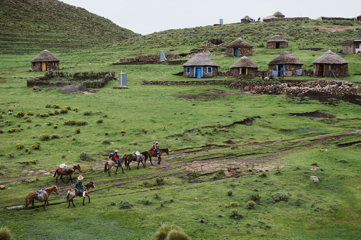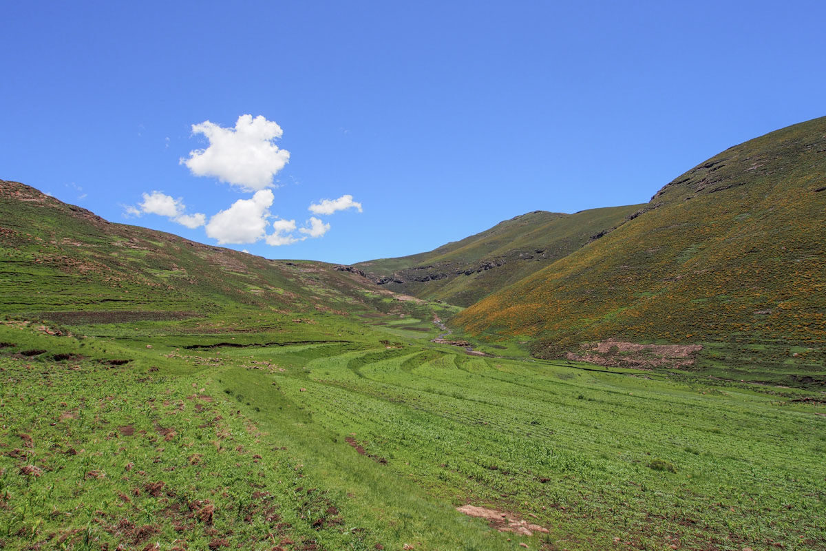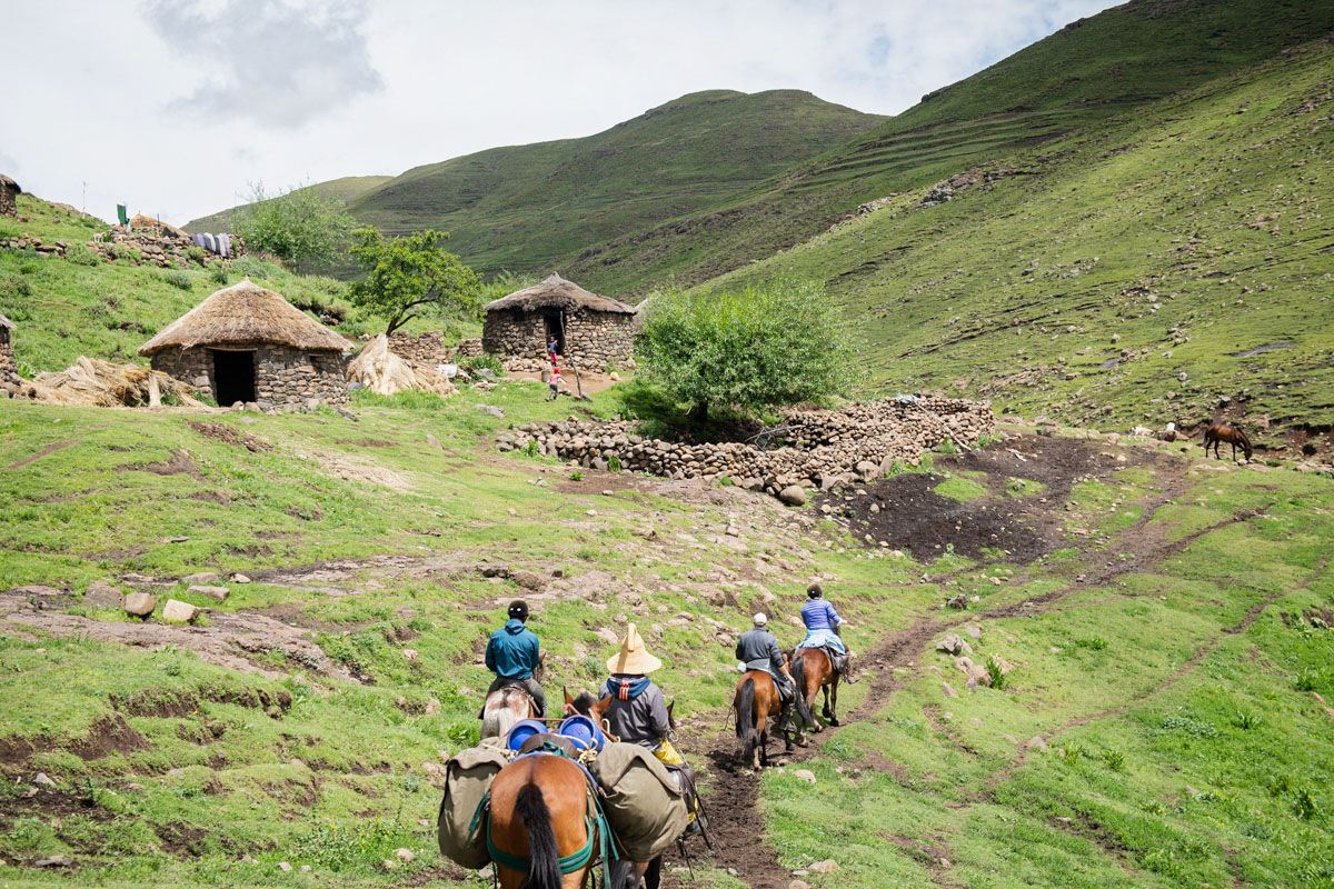 2泊3日のホース・トレッキングに出発。花咲く高地の平原や渓谷など、風光明媚なレソトの高原風景を堪能します。宿泊は、山中の村でホームステイ。