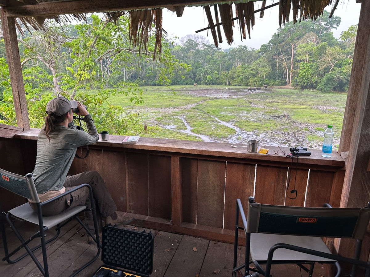 終日、バイ(湿地帯)で動物観察をお楽しみください。マルミミゾウやアカスイギュウ、シタトゥンガや運がよければ貴重なボンゴとの出会いもあるかもしれません。ニシローランド・ゴリラがバイにやってくることも。