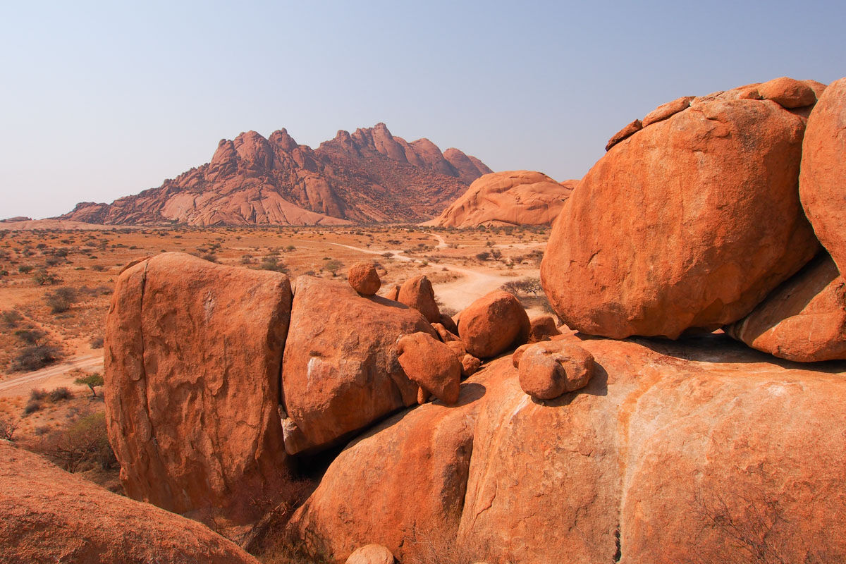 午前はブランベルグでのハイキング。ホワイトレディを見学します。その後、砂漠の植物‘ウェルウィッチャ’やオットセイのコロニー、ケープクロスへ。ナミビアのマッターホルン、スピッツコップにてキャンプ。個性的な花崗岩の岩山は朝夜夕と美しい景色が広がるでしょう。