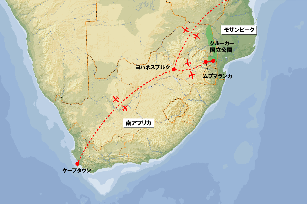 南アフリカを訪問するならまず外せない2つの見どころ、南アフリカでのサファリのメッカ「クルーガー国立公園」でのサファリと、アフリカで最も美しい港町「ケープタウン」での滞在、喜望峰など名所の多いケープ半島や名産地のワインランドのワイナリーや歴史ある小さな街の観光を組み合わせた、定番の南アフリカ旅ゴールデンウィーク特別版です。