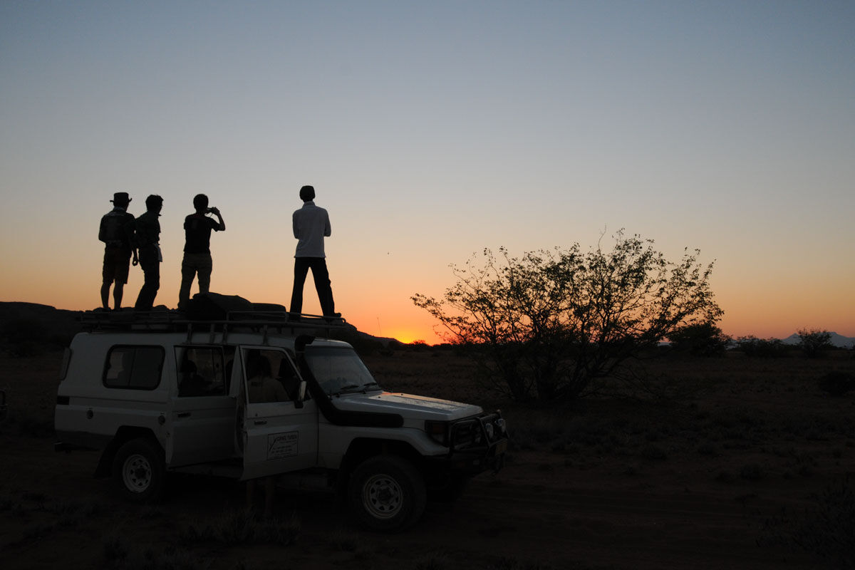 朝食後、ナミブ砂漠観光の拠点セスリエムへ。途中、スプリートシュート峠やソリテイルに立ち寄ります。夕、キャンプサイト近くの砂丘で夕日観賞。