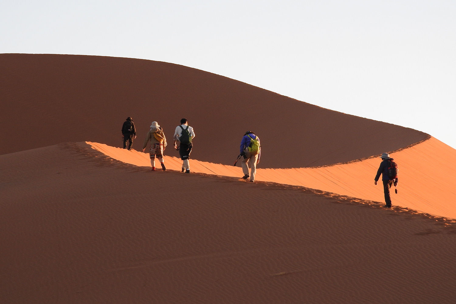 朝日に輝く砂丘群を見ながら、最奥部の砂丘へ向かいます。ソーサスフライ、デッドフライを見学。その後、デューン45に登る予定です。キャンプ場へ戻り昼食。午後は、夕、セスリエム渓谷見学。★オプショナルで砂丘上の遊覧飛行も可能です。