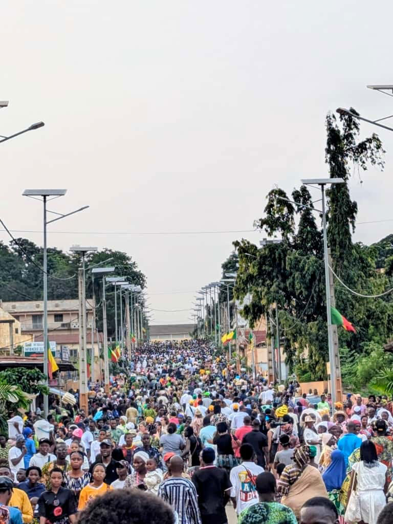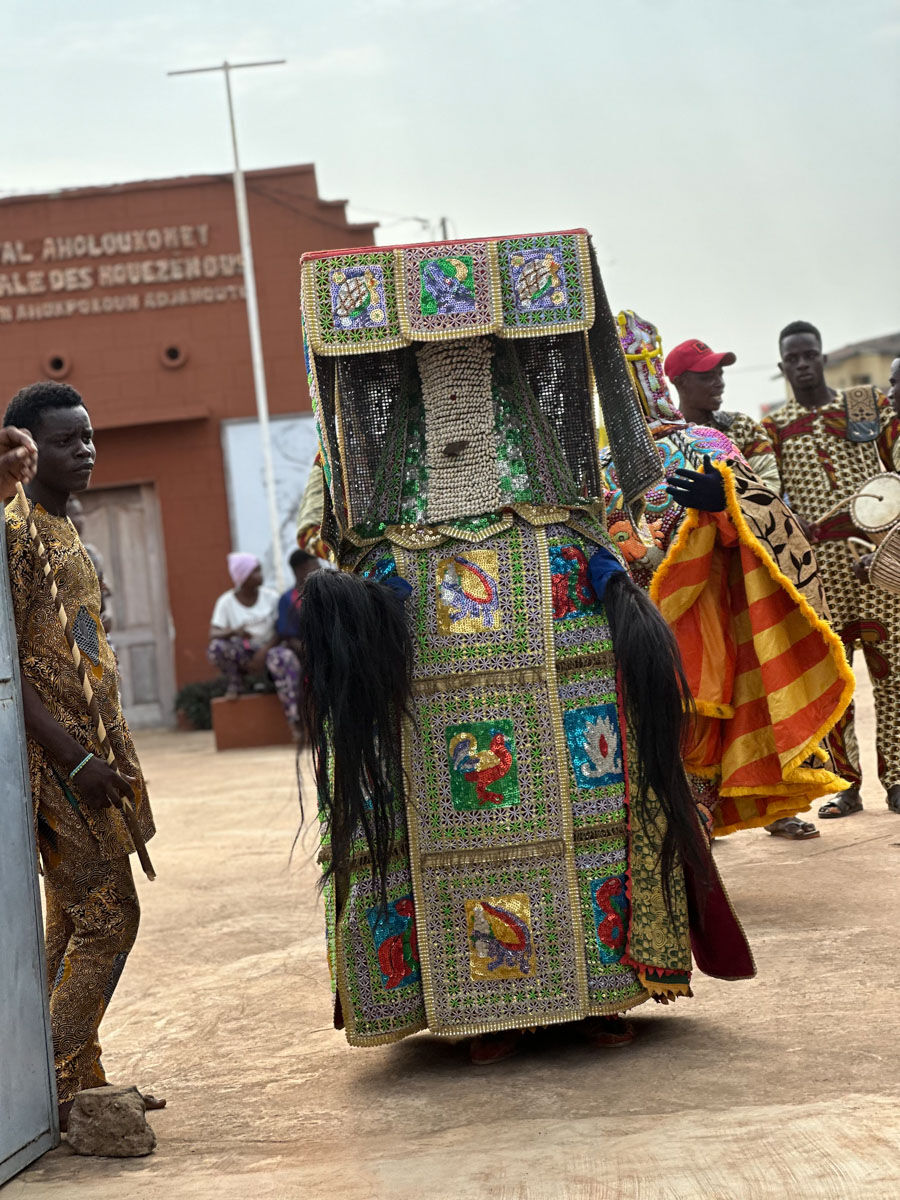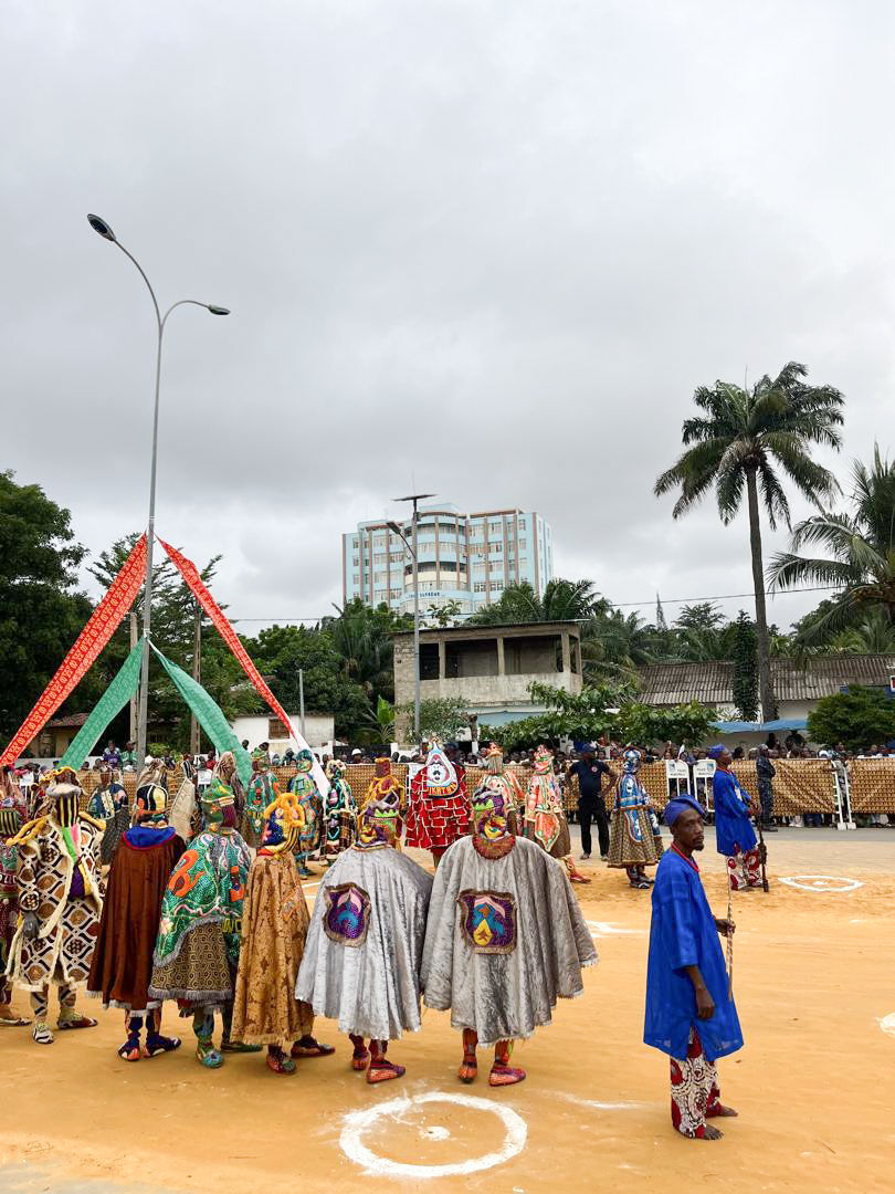 朝食後、マスク・フェスティバル会場へ移動。ベナンをはじめ西アフリカ各地のマスクがパフォーマンスとともに通りを練り歩きます。マスク・パフォーマンスだけではなく、ライブなど様々な催しもあります。