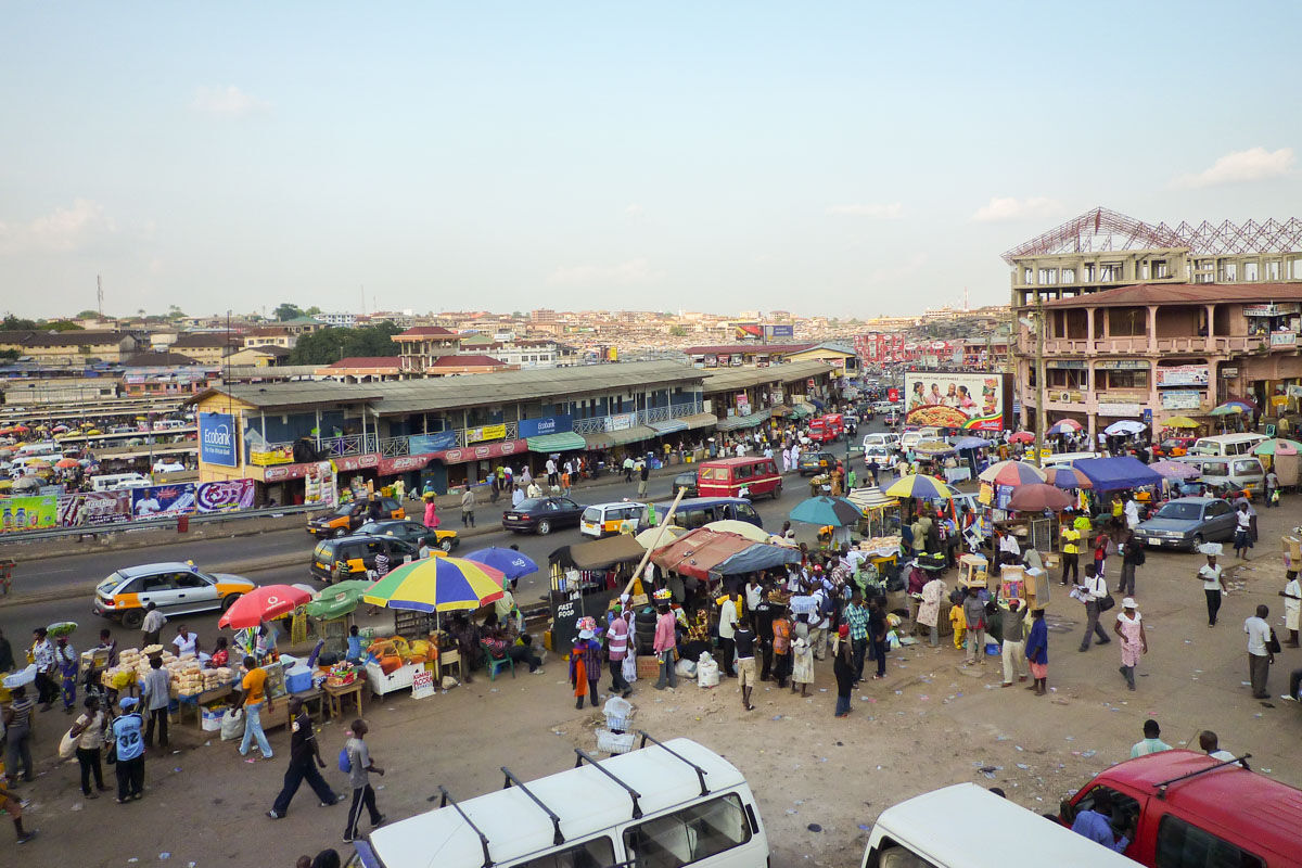 午前は西アフリカ最大のケジェティア市場を訪問。その後、アコソンボへ。