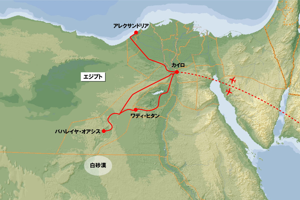 カイロへ戻ります。途中、クジラの化石が発見された世界遺産ワディ・アル・ヒタンに立ち寄り観光。