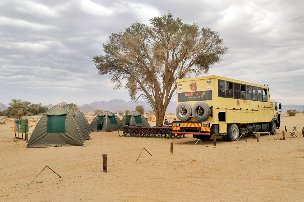 朝食後、出発。南回帰線とキュイセップ渓谷を通過し、ナミブ砂漠の砂丘地帯への入り口、セスリエムへ。到着後、テント設営。